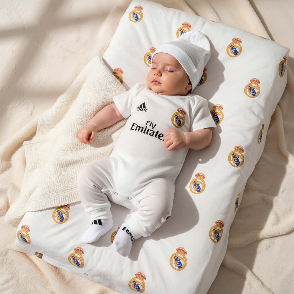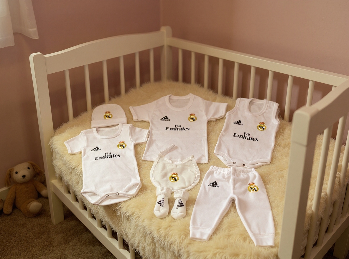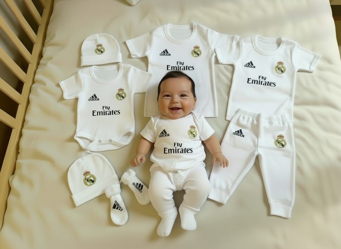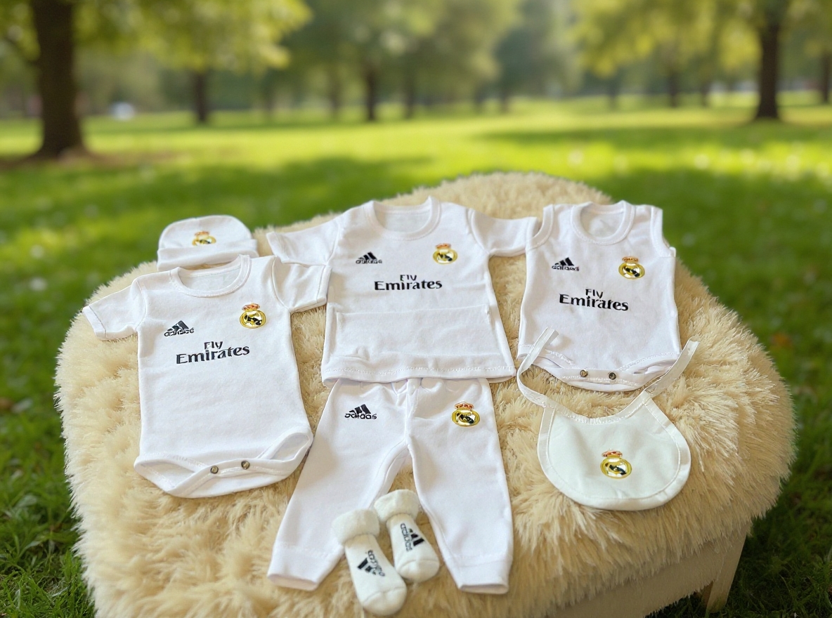 طقم رضّع فاخر مكوّن من 7 قطع بشعار ريال مدريد،